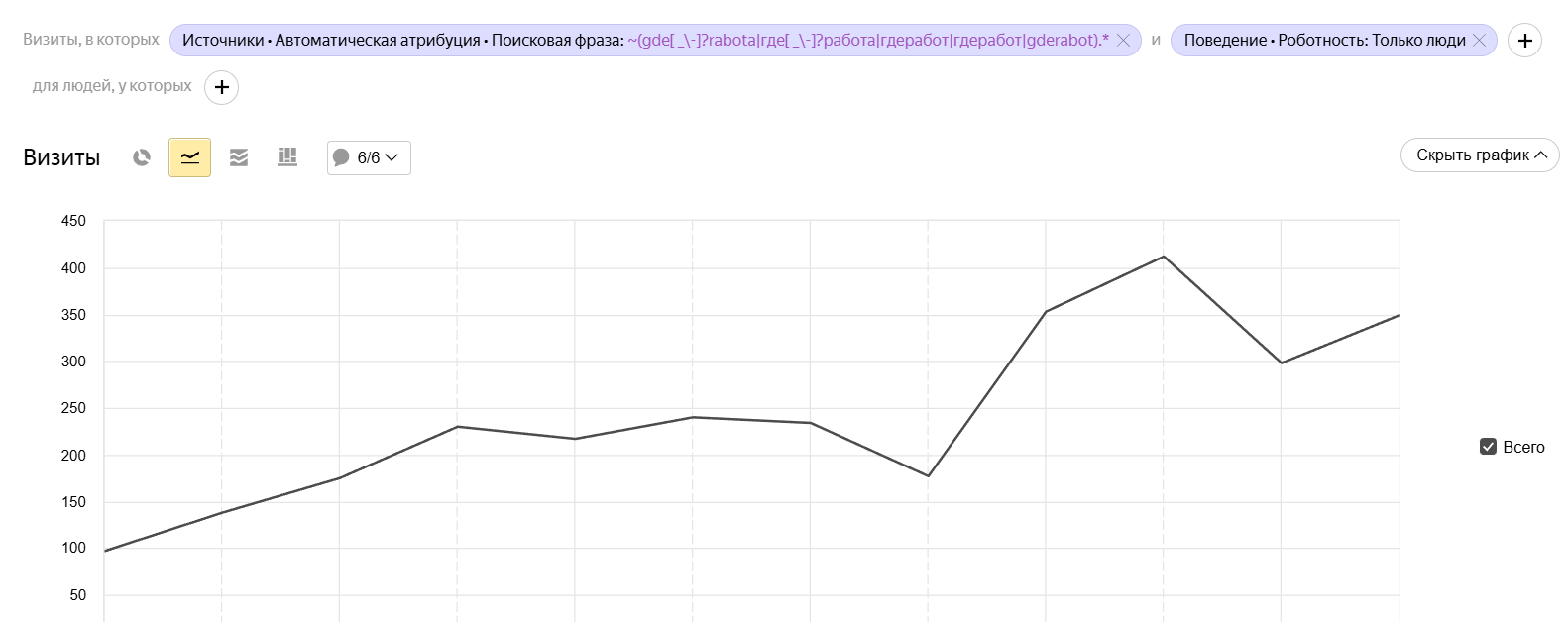 Реальность оказалась неприятной. За год мы получили 304 публикации, но только 17 из них содержали ссылки, и лишь 11 – dofollow. 287 публикаций упоминали сайт – GdeRabota.ru, но не разметили ссылкой – GdeRabota.ru.