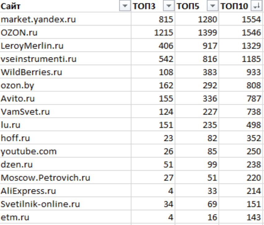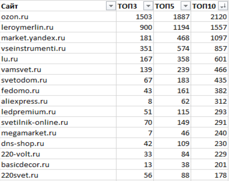 В целом, в тематике «Товары для освещения» встречается не так много случайных сайтов. Если накрутку применяют сайты-гиганты, то отследить ее сложно, так как они делают это неагрессивно.