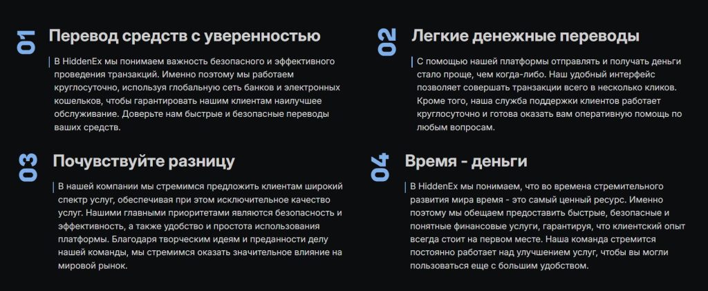 Это особенно важно в современном мире, где скорость и удобство зачастую выходят на первый план. Забудьте про долгие проверки и бюрократические заморочки — с HiddenEx все быстро и прозрачно.