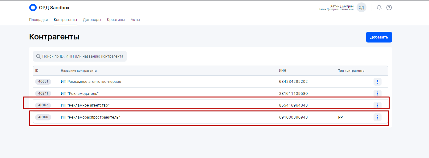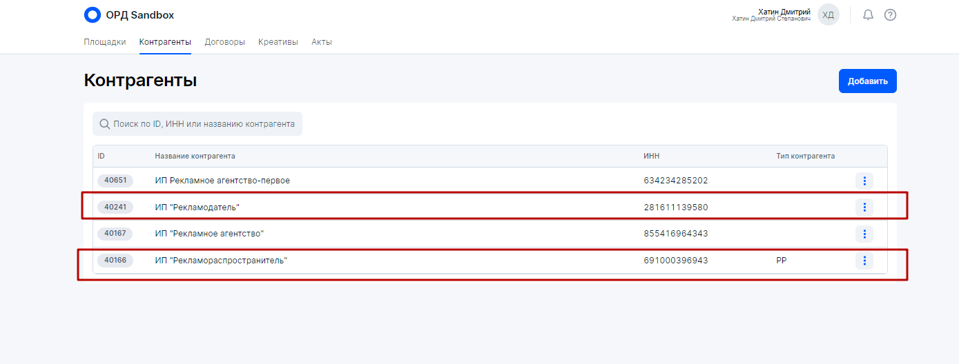 3. Добавить Контрагентов (в данном случае рекламораспространителем является Блогер):