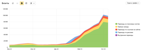 Причем, чтобы не было иллюзий – мы помечали нейростатьи специальными UTM-метками. Прямо отслеживали трафик именно на них. И да, именно они давали основной рост.