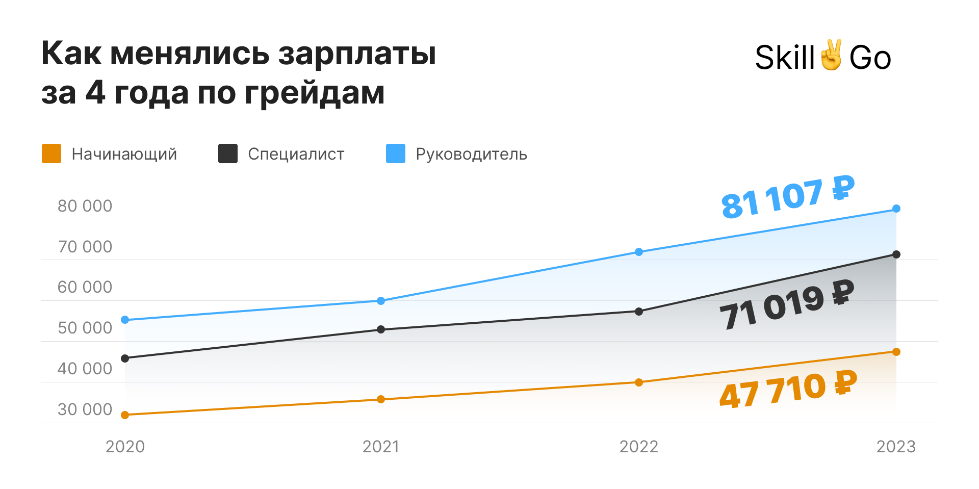 Здесь мы можем строить лишь прогнозы на основании имеющихся данных. Пока ситуация следующая: инфляция продолжает расти и по разным оценкам составит от 8 до 9,5%. Но за счет более выгодного положения SEO-специалистов на рынке труда (их действительно не хватает), рост продолжится до 15-18%, т.е. до 83 780 ₽.