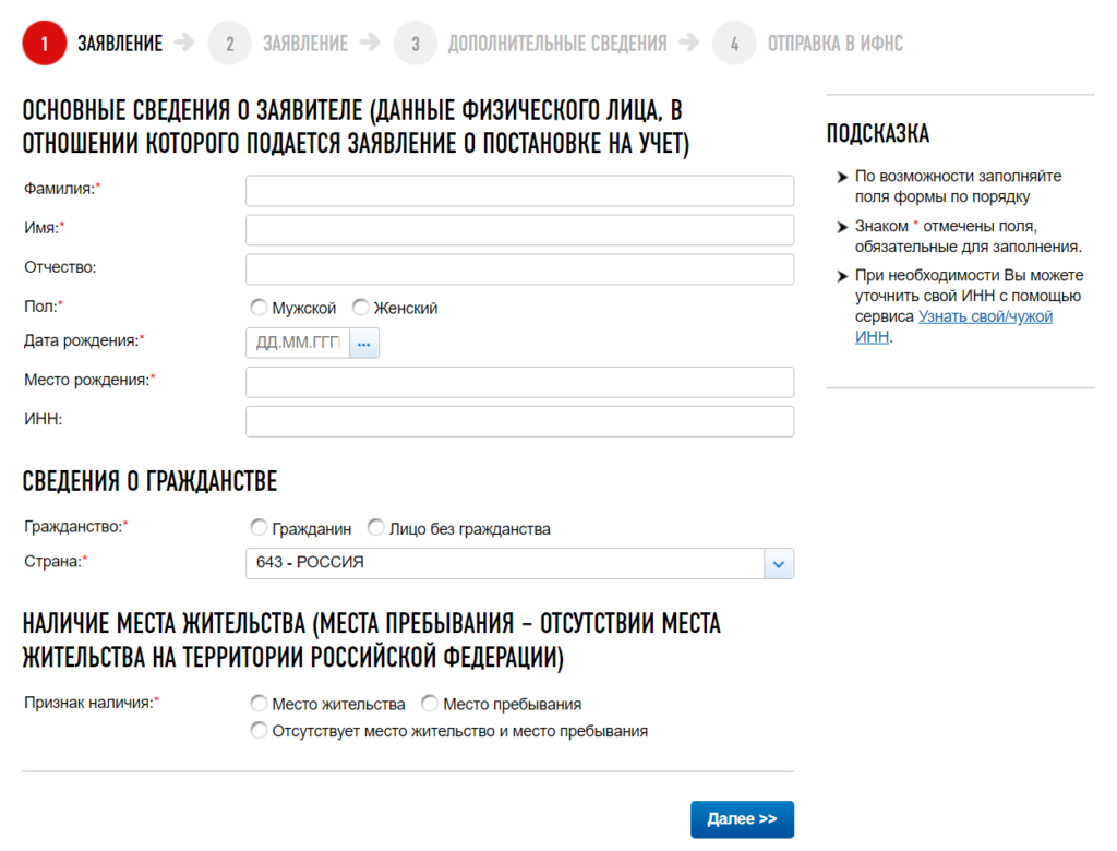 - использовать сервис «Постановка физического лица на учет в налоговом органе» на сайте ФНС.