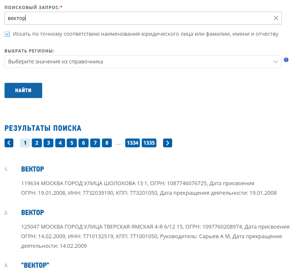 Результатов будет много, нужную компанию проще всего определить по адресу регистрации. При желании там же можно скачать выписку по любому юрлицу.