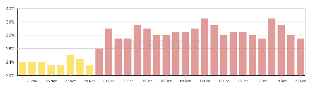 Неподтвержденный апдейт Google, предположительно начавшийся 30 ноября продолжается и, кажется, только набирает обороты. Уже более 20 дней выдачу штормит, а от Google по-прежнему нет никаких комментариев.