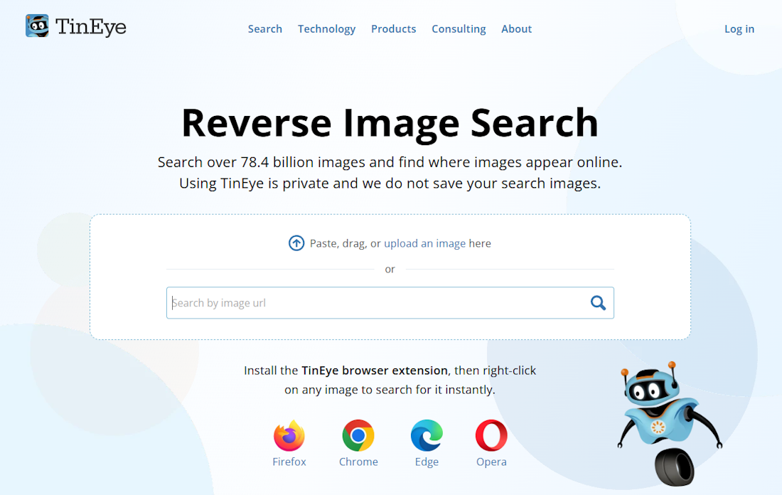 TinEye – специализированный поиск по изображениям. Можно загрузить картинку и найти идентичные или похожие варианты. Таким образом можно искать сайт-первоисточник, информацию об авторе или отслеживать использование своих изображений в сети. TinEye также поможет, когда нужно найти идентичную картинку, но в более хорошем качестве.