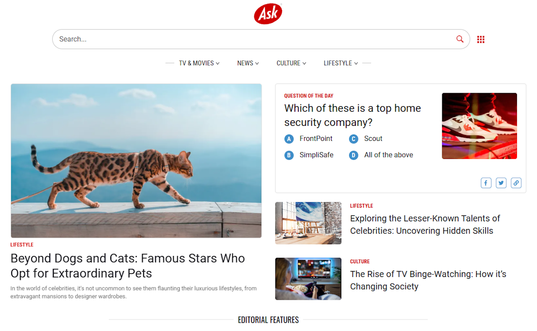 Ask был создан в 1996 году, раньше активно развивался, использовал собственные алгоритмы ранжирования и систему контекстной рекламы. Но не выдержал конкуренции с более сильными игроками и закрылся в 2010 году. Но функция поиска на сайте осталась, результаты формируются с помощью Google.