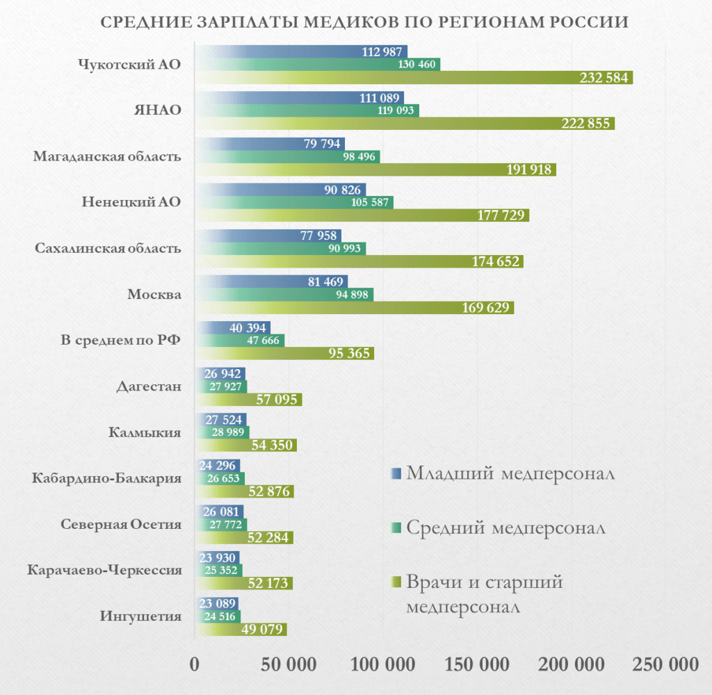 В 2022 году меньше всего получали медики в регионах Северного Кавказа, а больше всего – на Севере: