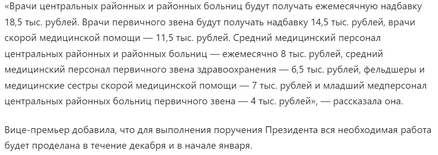 Соответственно, первые выплаты медики получат, возможно, не в январе, но начисляться они будут в полном объеме с начала года.