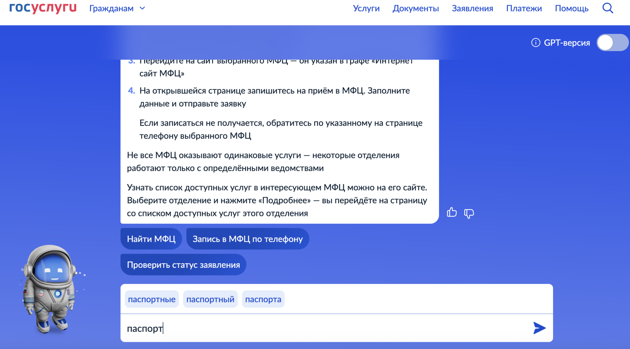 Нет необходимости заполнять бумаги вручную, стоять в очередях с утра, тратить день на дорогу в ведомство и обратно. Вы отправляете заявление онлайн, прикрепляете документы в удобной цифровой форме и приходите только в случае, если это действительно нужно — например, для получения готового паспорта или сдачи биометрии.
