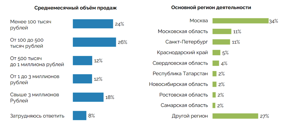 На этот вопрос нельзя ответить однозначно: все зависит от размаха работы, оборотов, категории товара и множества других факторов. Небольшой интернет-магазин товаров для дома может иметь выручку в несколько сотен тысяч рублей, в то время как производитель, который вышел на маркетплейсы, вполне способен зарабатывать миллионы и десятки миллионов.
