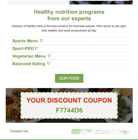Аккордеон – позволяет скрыть или расширить контент во вкладках, что хорошо экономит место в рассылке и не перегружает подписчиков ненужной информацией. Например, пользователь может увидеть описание интересующего товара, просто кликнув по нему.