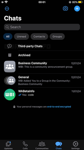 Функция совместимости позволит человеку из стороннего приложении для обмена сообщениями, например Signal, отправлять сообщения пользователю WhatsApp, даже не имея учетной записи WhatsApp. В бета-версии мессенджера появился специальный раздел, куда попадают все входящие сообщения из сторонних приложений: