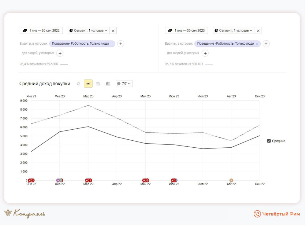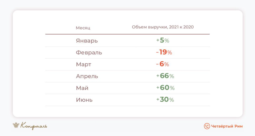 К концу первого этапа — июню 2021 года, получили первые результаты. С апреля продажи не только выправились, но и пошли вверх по сравнению с предыдущим годом. Что принципиально важно – без увеличения рекламного бюджета.