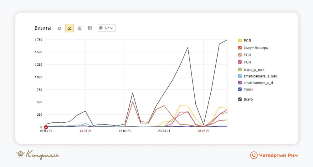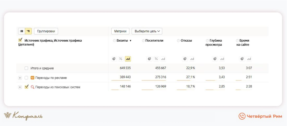 Маркетинговые итоги 2020 года для компании оказались неудачными: бюджеты, которые тратило предыдущее рекламное агентство, не соответствовали продажам. В январе 2021-го команда «Конфаэль» решила провести независимый аудит — по его итогам нашли множество недоработок в ведении кампаний. Экспертиза команды «Четвёртого Рима» вызвала больше доверия, и с марта проект перешел к нам.