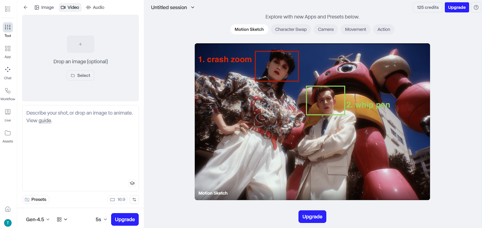 Runway – AI-платформа для работы с изображениями, видео, аудио. Можно создавать сложный визуал без навыков анимации и монтажа.