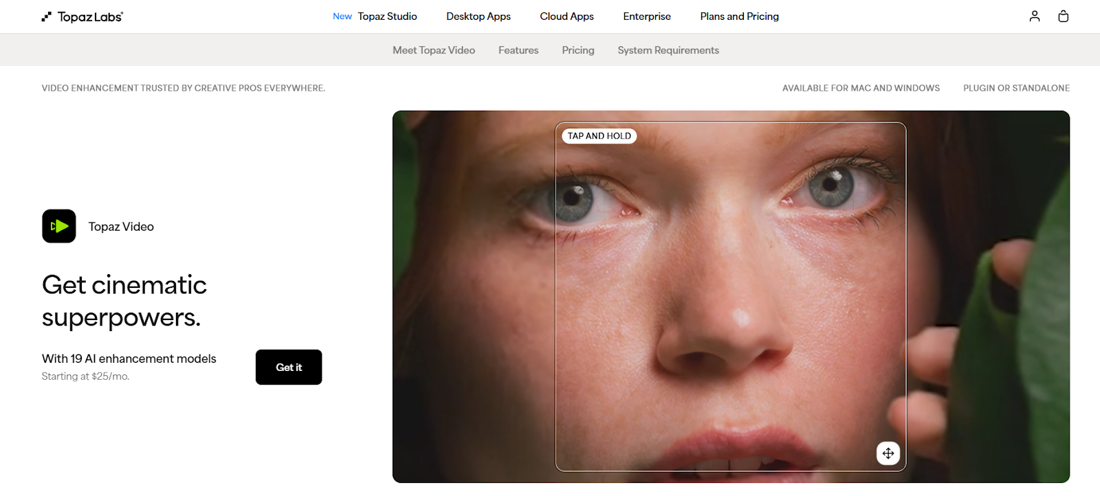 Topaz Video AI – профессиональное десктопное решение для улучшения и восстановления видео. Сервис не просто увеличивает изображение, а восстанавливает детали с помощью специализированных моделей.