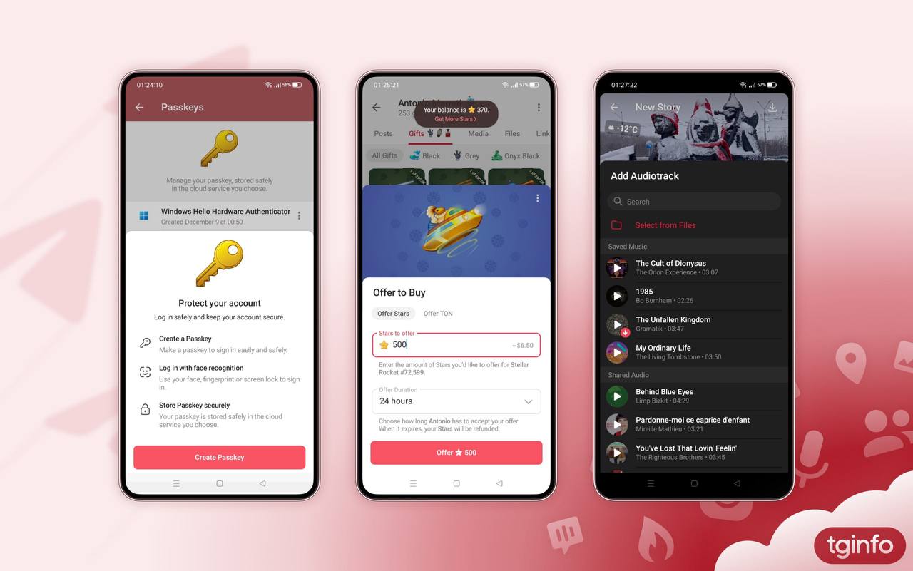 Telegram выпустил крупное обновление. Приложения обновились до версий 12.2.10 для Android и 12.2.4 для iOS, получив два ключевых нововведения: безопасные «Ключи доступа» (Passkey) и функцию предложений о покупке цифровых подарков.