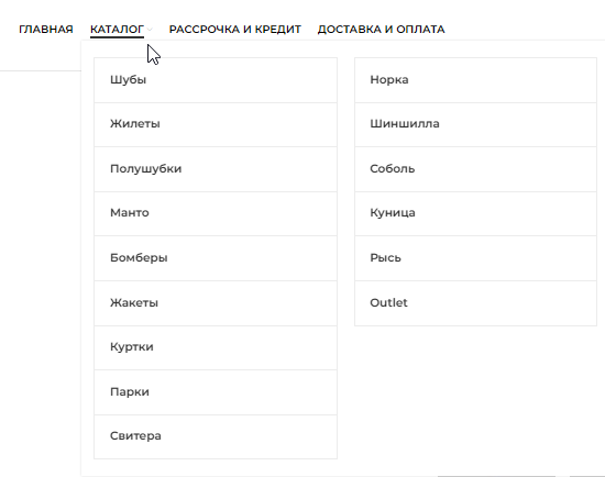 Здесь все сделали по классике: на главную добавили популярные товары и товары по акции или со скидкой. Это позволяет посетителям не искать такие предложения по каталогу. В ассортименте нашего клиента были и шубы по 7 миллионов, и недорогие изделия от ста с небольшим тысяч. Последние и попали на главную: